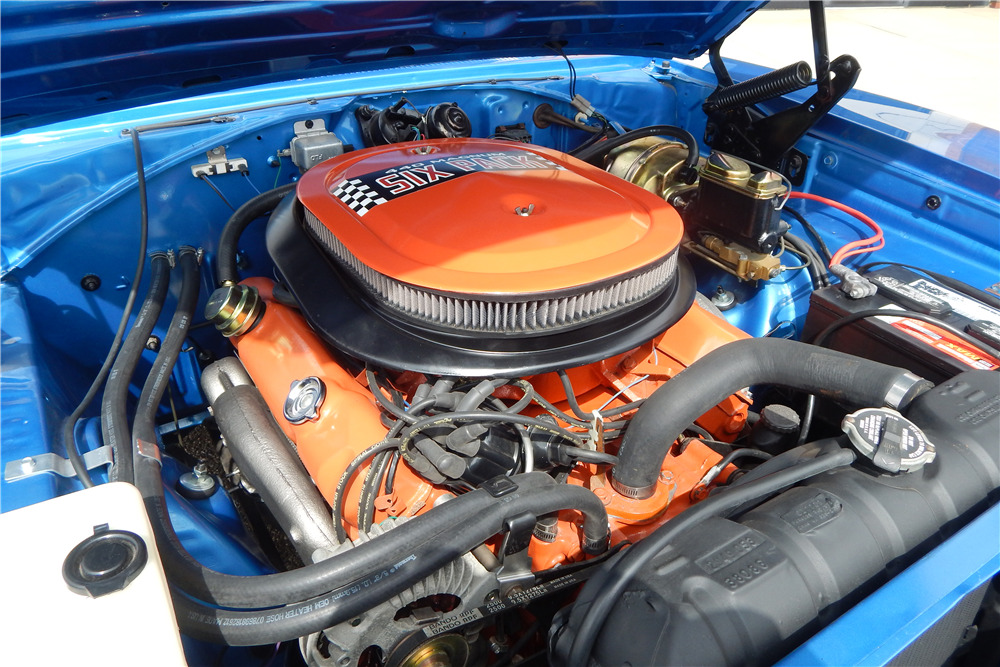 . The car underwent a subsequent refurbishment that included refinishing the exterior in yellow with black stripes and a black vinyl roof, replacing the interior, and installation of a 446ci V8 and three-speed automatic transmission Note: The performance of the Chargers varies depending on Drivetrain, engine and Trim options